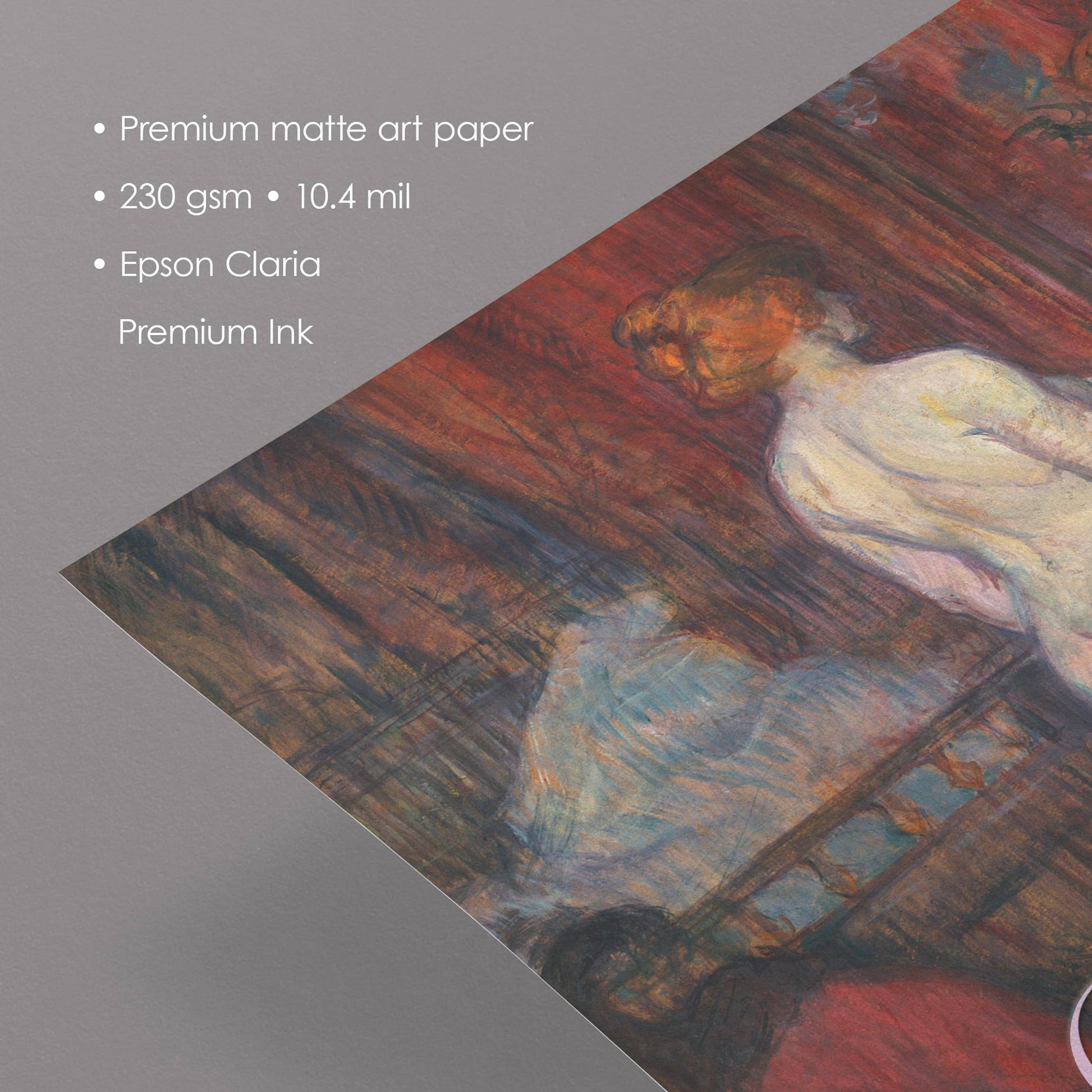 A Classic Toulouse Lautrec Portrait of a Woman Before a Mirror with the phrase "Certified Freak 7 Days a Week" in elegant type.