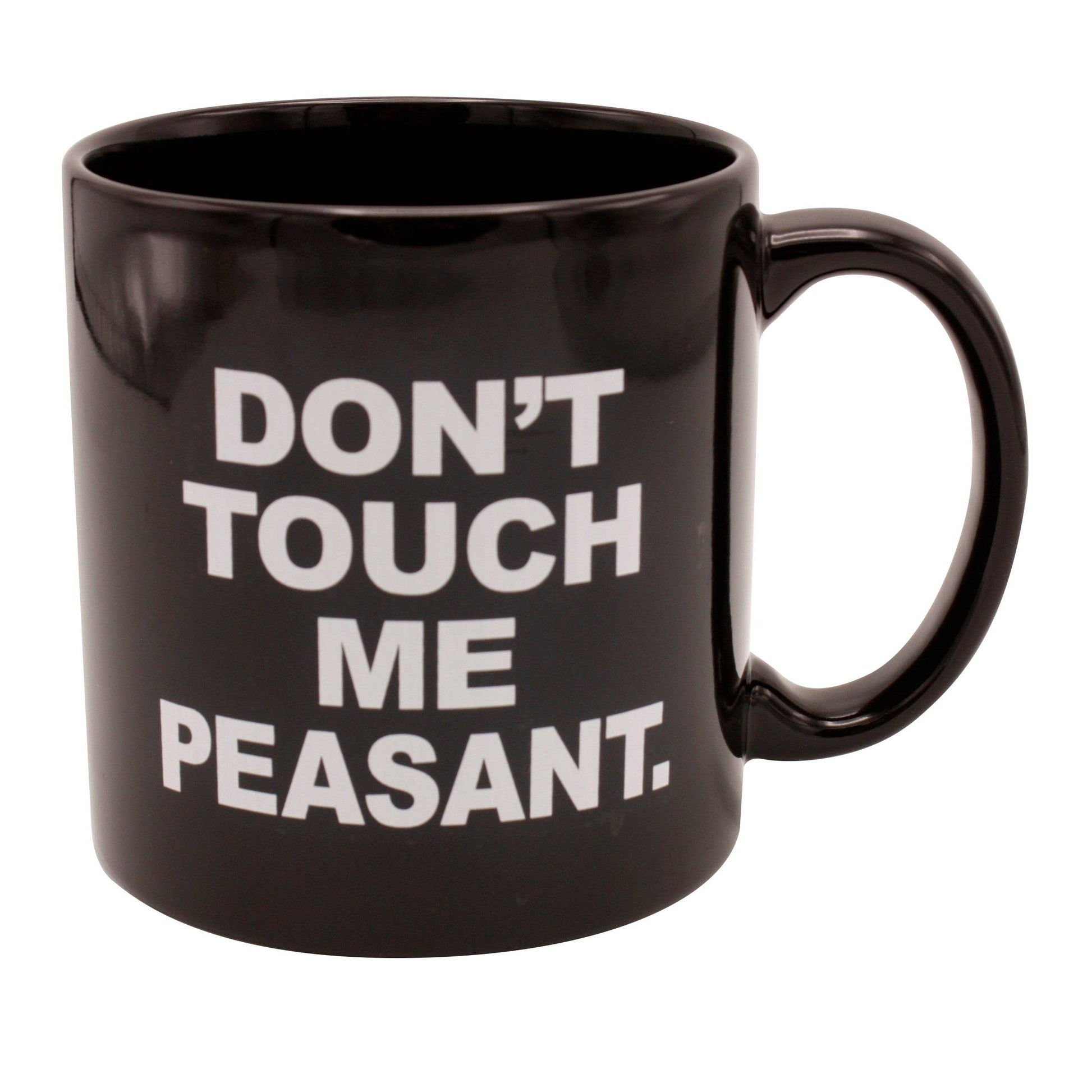 Make your statement with this Giant Don't Touch Me Peasant Mug! Just a made-to-be-noticed 22 ounces of boldness, this stunningly simple mug will wow your colleagues with its size and style, and make them think twice before touching it. Great for the office or your kitchen, it also makes a hilarious gift!
