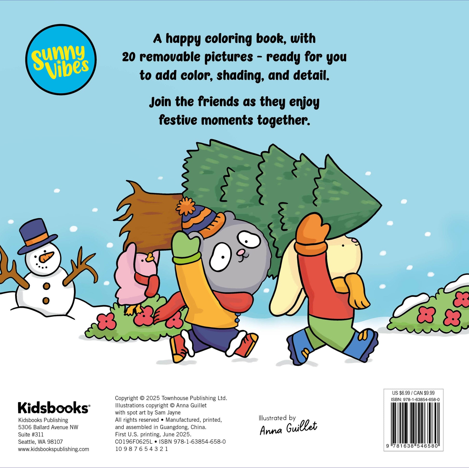 A bold and simple coloring book with hand-drawn images. Filled with happy scenes of animal characters enjoying time at home – baking, gardening, and snuggling under blankets.
